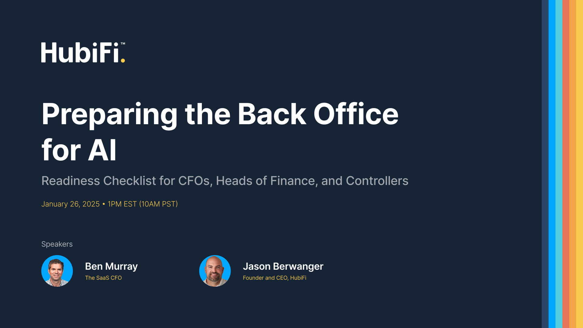 Join Ben Murray, The SaaS CFO, and Jason Berwanger, CEO at HubiFi, on January 21, 2025 at 1 pm EST / 10 am PST as they discuss the steps teams need to take in order to bring AI to the back-office.